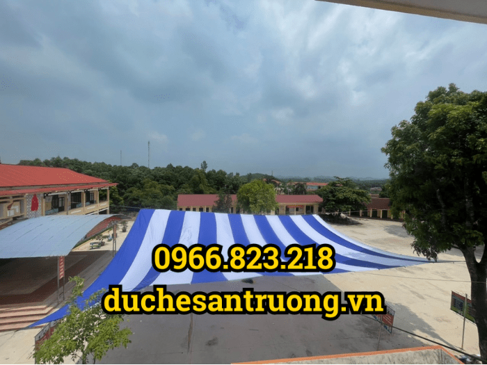 - Kích thước dù tấm: tính theo m2, may đo theo số lượng học sinh trong trường