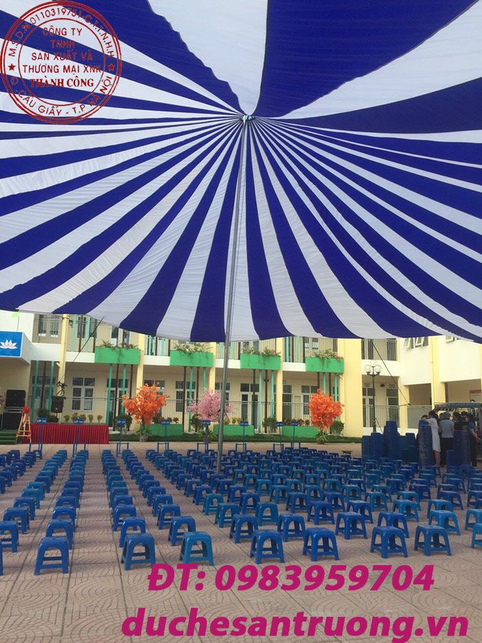 Dù che nắng sự kiện là sản phẩm luôn cần thiết cho các buổi sự kiện ở trường học. Một năm trường học có biết bao nhiêu là sự kiện diễn ra ở sân trường. Chính vì vậy cũng cần phải có các sản phẩm để phục vụ cho nhu cầu cầu sử dụng đó. Sản phẩm dù che nắng sân trường sự kiện là dòng sản phẩm không thể thiếu.